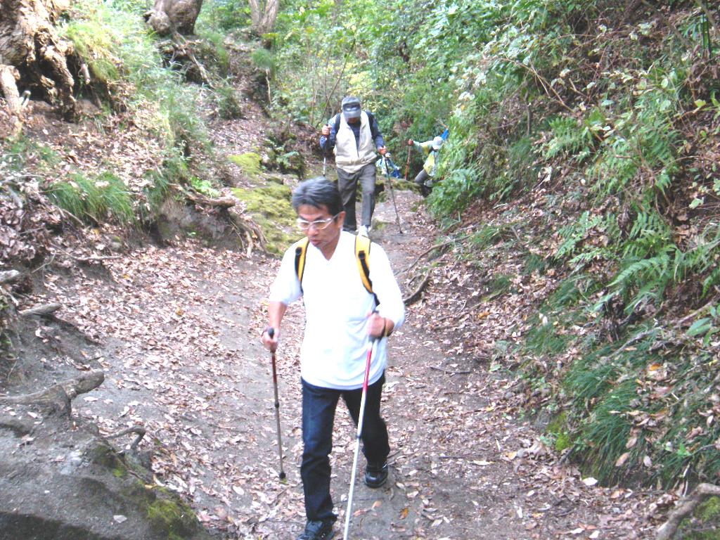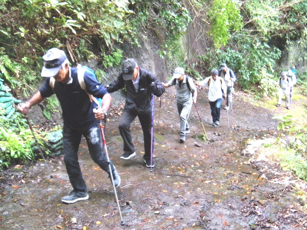 最大の難関場所である仮粧坂(けわいざか)切通(湿潤状態で滑りやすい)も、講師の的確な