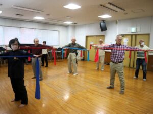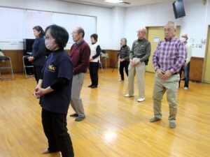 本年最初の稽古が実施された。従来気功太極拳は老人福祉センターで行われていたが、部屋が確保出来ず、有料であるが市民会館で実施された。