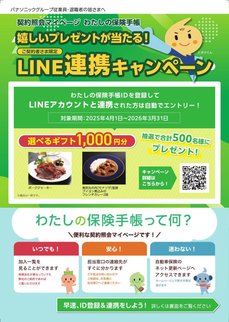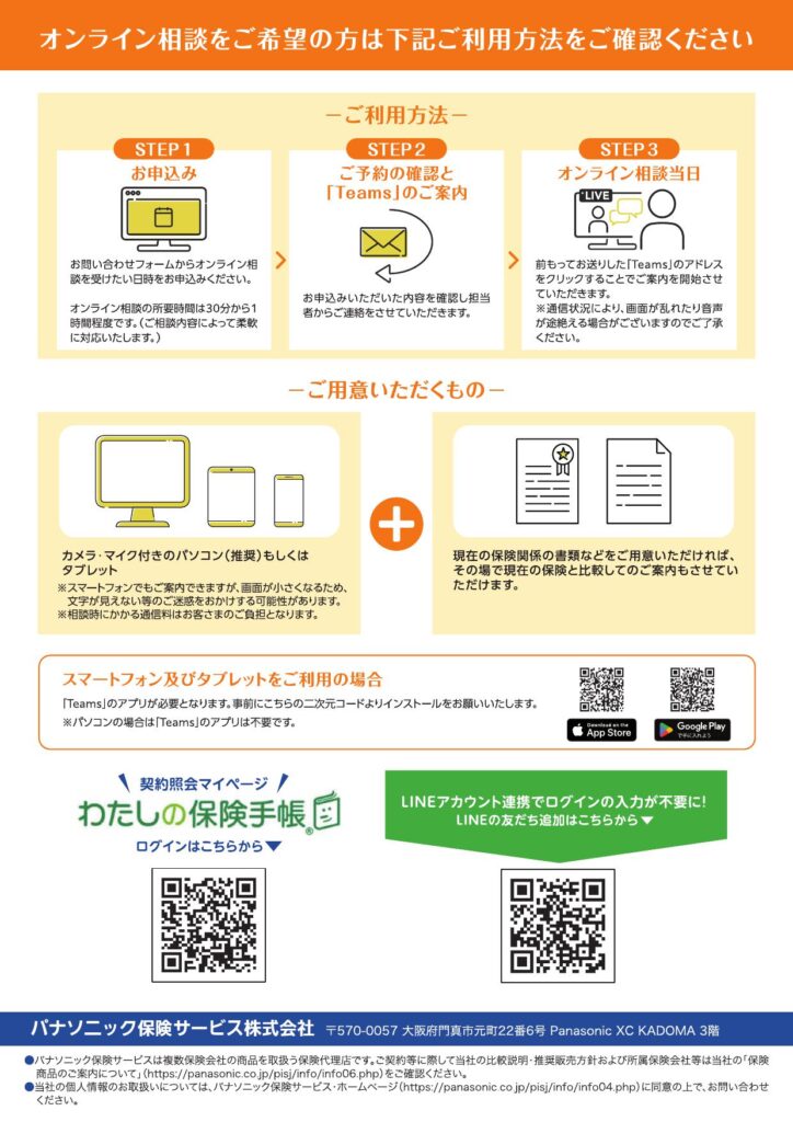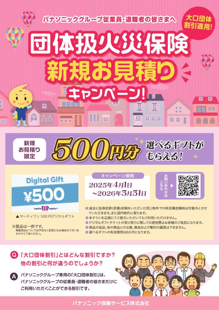 2025.06.14 特典情報 パナソニック保険サービス 相談会情報 商品情報 2025年度 パナソニック保険サービス 相談等お問い合わせは下記担当までご連絡ください。 パナソニック保険サービス(株) <横浜事務所連絡先> ライフコンサルティング一部 営業三課(佐江戸構内) TEL:045-938-2045 FAX:045-938-20 ■弊社ホームページ <トップページ> パナソニック保険サービス株式会社 | Panasonic <お問い合わせ・FAQ> パナソニック保険サービス株式会社 | Panasonic かんたん無料相談 わたしの保健手帳 火災保険情報 投稿者: sunaga 特典情報