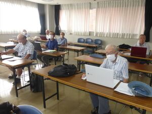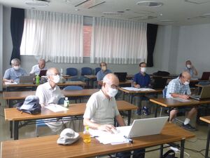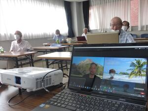 *前回(7/15)に引き続き、Zoomの使い方を練習。教室への参加者の他に、自宅からのZoom参加者が1名。