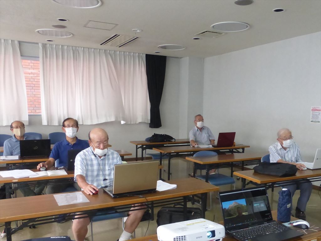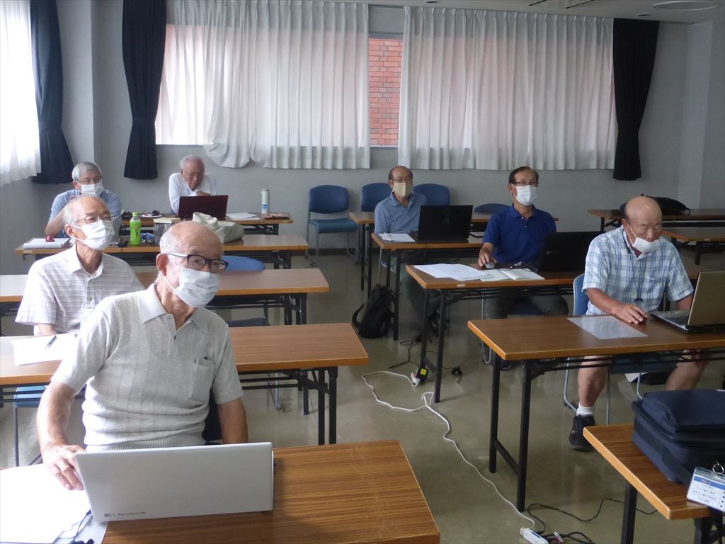 *前回(7/15)に引き続き、Zoomの使い方を練習。教室への参加者の他に、自宅からのZoom参加者が1名。
