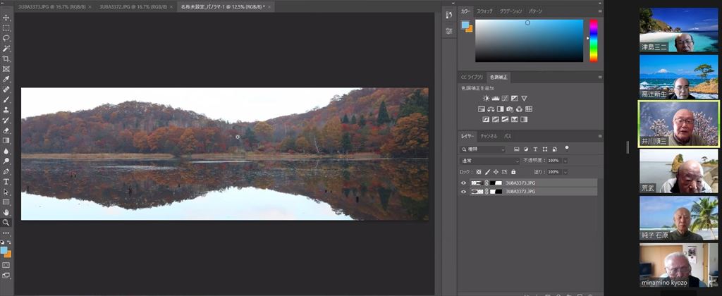 ③ 各クラブのHPでは、園芸クラブは川久保さんと荒武さん、気功太極拳クラブは川久保さんと津島さんと荒武さんがそれぞれの立場から説明して戴きました。湘南フォトクラブは井川さん自身が展示した写真の解説と共に、他の方々の作品の解説もありました。また写真のパロラマ化を始めいろいろな加工方法を紹介して戴いたり、実演も多々遣って戴きました。