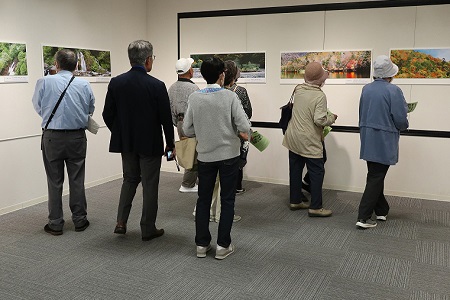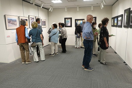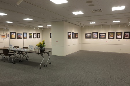 展示内容としては、ご来場者の方々に楽しくご覧いただける様3つのコーナーに分けて展示を行いました。 1、テーマ作品「湘南の四季」11点 2、「自由作品」33点 3、「パノラマ作品」11点 3つのコーナーで合計55点の展示を行いました。