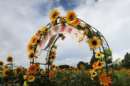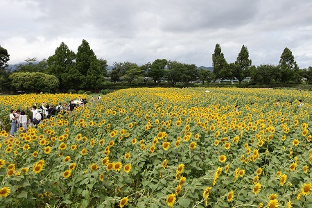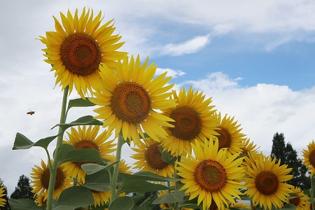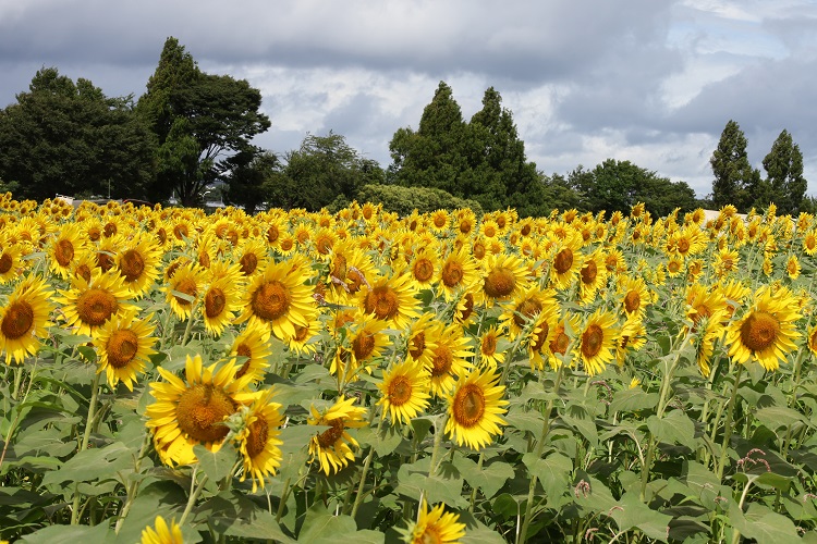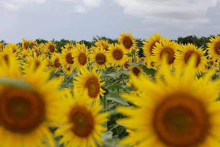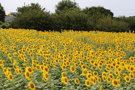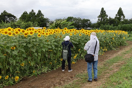 当日は、曇りで時々小雨の降る天候でしたが、見ごろのひまわりを見る事が出来ました。