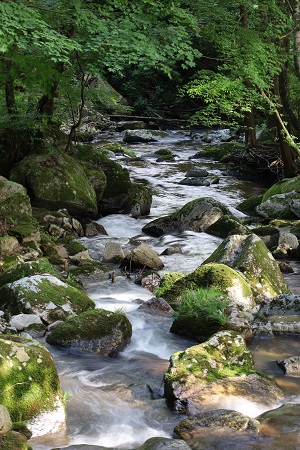 翌日は、5時30分から旅館近くの河童のすり鉢遊歩道で早朝撮影を実施し早朝の景色、新緑と渓流等を撮影することが出来ました。