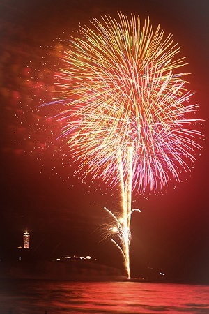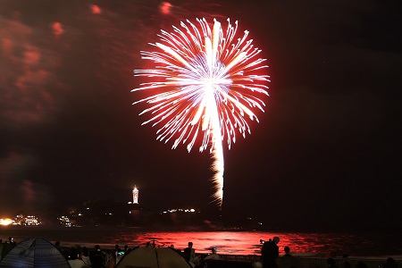 江の島花火大会は、江の島をバックに片瀬海岸西浜から花火が打ち上る江の島の秋の風物詩です。