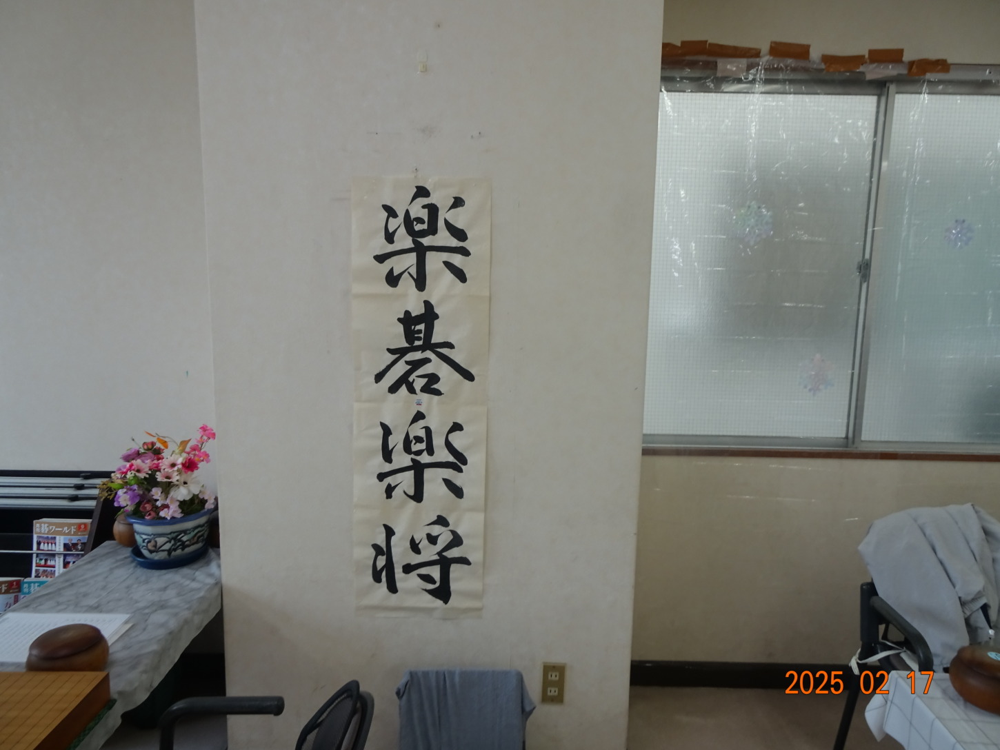 平塚棋院の部屋の入り口には「楽碁・楽将」の書がかけられていました。