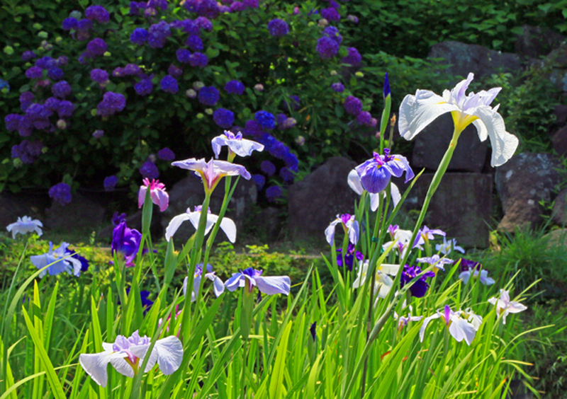 - 6月の花「花菖蒲とアジサイ」