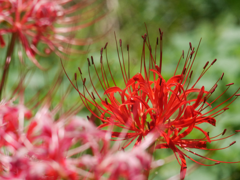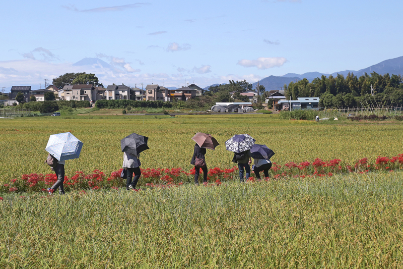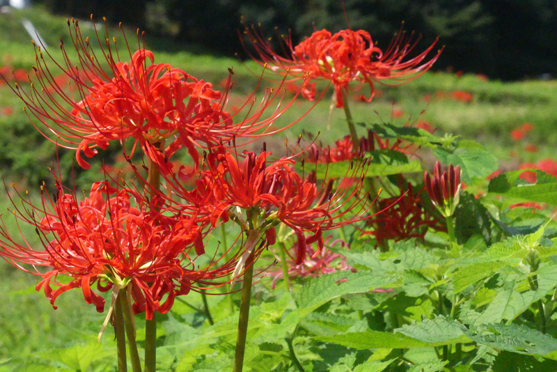 - ニューファミリー曼殊沙華に見送られ :散歩中 秋の七草 思い出す