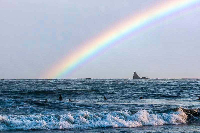 - 湘南の夏雲➁-真昼の烏帽子岩に出た虹