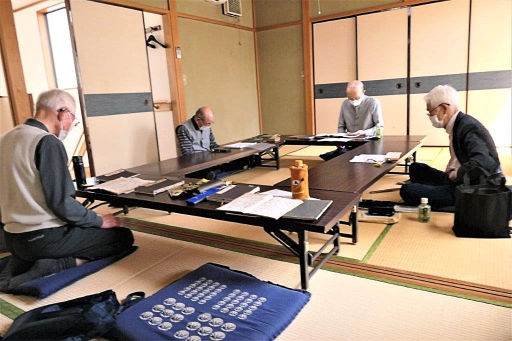 稽古会場はかなりのスペース あり、換気・消毒に留意して、曲数、内容を可能な 限り圧縮して、