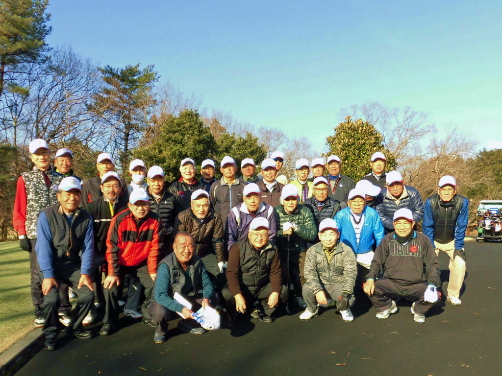 - ニュー南総ゴルフ倶楽部にて、スタート前の松千会統一白帽の選手達