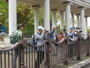 - 広い休憩所で「鳥合わせ」、23種を確認