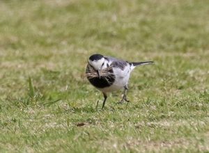 ハクセキレイ 巣材を咥えて巣作りで忙しそう