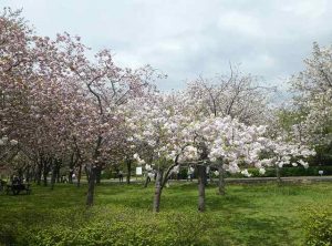 ~花壇記念庭園~八重桜の林(昼食)~さくらの山~あずまや~青葉ケ池~彫刻の広場