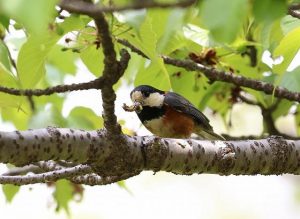 - ヤマガラ、美味し?そうな虫を捕まえて