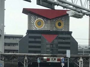 - バスで千葉駅前に移動、 駅前の交番がフクロウをモチーフに