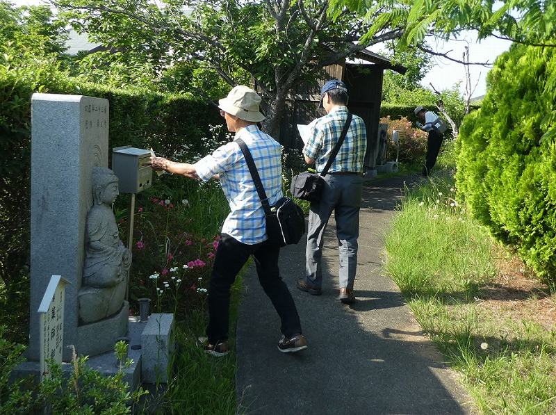 合わせて石仏が立ち並び、事前に寺務所で求めた納札を其々の石仏の脇にある納札箱に入れながら