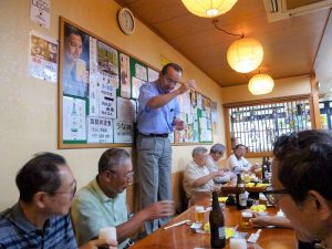 場所を再び土浦駅前に戻り、「天ぷら八起」を貸切りにして貰い和やかなひとときを過ごし、良い交流が出来ました。 〈文章:戸谷輝夫〉