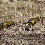- カワラヒワ、羽の黄色のマークが特徴
