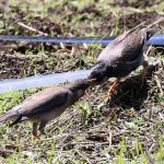 - ムクドリの親子、まだ巣立ちして間もない給餌