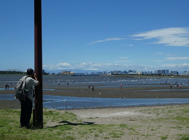 - 西のなぎさを眺めてみると、引き潮で大勢の家族連れが