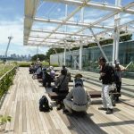 - 船着き場のデッキで昼食