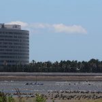 - 立ち入り禁止の「東のなぎさ」には多数の野鳥、後方はディズニーランドのホテル群