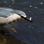 - ゴイサギ、見事小魚ゲット、よく見ると口先にも何かもう一匹