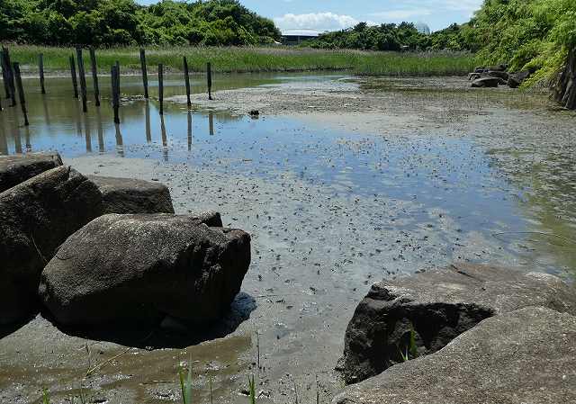 - 下の池(汽水池)を間近に観察出来ます、カニが沢山出てきています