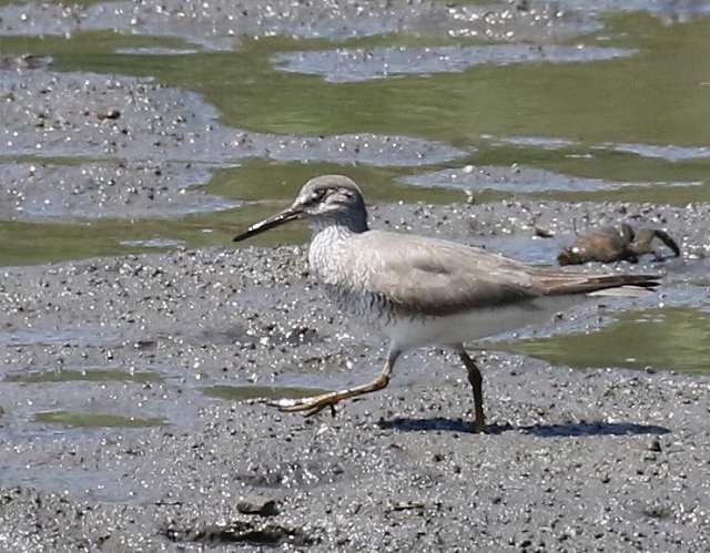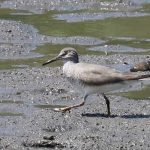 - キアシシギ、干潟を歩き回って、脚の黄色が泥だらけ