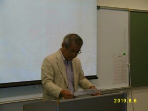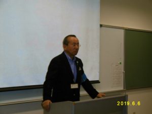 3.来賓 関支部長挨拶…自己紹介(60歳支部長)、会員数の趨勢と支部活動の改善と実践