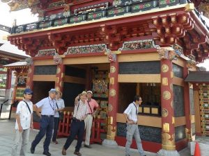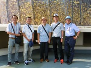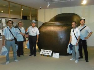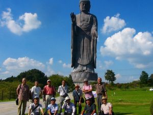 - 120m世界一仏像の足元、台座部分で、胎内めぐりの一行が記念写真