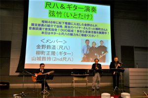 もう一曲は、尺八の山城先生にも加わっていただき『弦竹(いとたけ)』メンバーお三方の演奏を堪能しました。