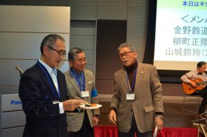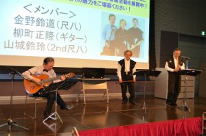 奏でていただきました。尺八の金野大師範は松愛会首都圏支部の会員であり、ギターの柳町先生は、