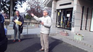 - 二宮尊徳資料館前で小石川報徳一圓塾長より説明を聞く