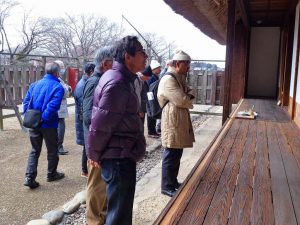 - 今回参加の18名が桜町陣屋を背景に記念写真