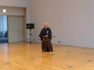 全日本剣道連盟居合道範士八段小倉昇先生の居合道についての「講話」と「演武」を披露して頂いた。