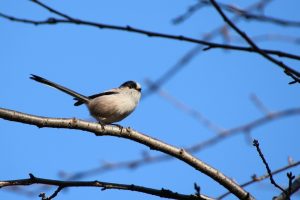 - エナガ、小型でひしゃくの柄のような形状の鳥