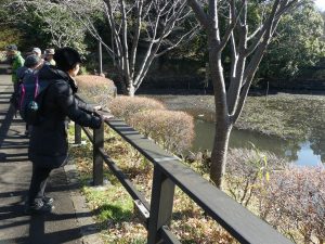 当会として初めて訪れる観察地です。日頃の散歩コースとして楽しんでおられるIさんのご紹介で実現した観察会ですが、周囲を住宅地で囲まれていながら、上・中・下の三つの池を中心にして、豊かな緑に囲まれた「県立三ツ池公園」は、都会の喧騒を忘れさせてくれる静かな場所で、野鳥達の生き様を確認出来る貴重な観察地でした。