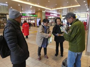 - 東小金井駅に集合(小雨模様にも関わらず熱心な参加者)