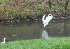 - 野川の流れに、ダイサギとコサギ(大きさの比較が容易)