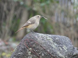 - ジョウビタキの雌、羽の横に見える白い紋が特徴です