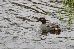 現地の天気予報では、当初は一日中雨模様となっていたのですが、現地の予報が小雨から徐々に変わって、昼前には雨があがるようでしたので、思い切って実施した次第です。11時半にはすっかり雨もあがり、野鳥たちも待ちかねたように、次々と私たちの目の前に現れて楽しい観察会となり、お目当てのシマアジ(魚類ではなく鳥類)・カワセミ・キセキレイはじめ35種との出逢いがありました。