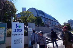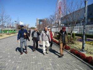 次のベイゾーンへは、りんかい線に乗車、国際展示場で下車しました。パナソニックセンターを左にみながら、有明コロシアム、有明アリーナへ、二つとも、工事中の為これまた、外側からチラッと観るだけでした。お腹も空いた頃合いで、江東区の虹の下水館で昼食と思いきや、只今【休館中】の貼紙にガックリ。晴れた日でよかった。館前の広場で、仲良く、持参の弁当をパクつきました。食後にと考えていた館内見学もなく、次の水の科学館まで、400mをゆっくり歩き着いたところ、またも、【休館中】何処行っても休館、多分、Tokyoミナトリエも休館かもしれないと、スマフォで確認したところ、キュウカンでした。