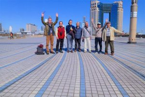 しかたなく、7名の高齢者がお台場目指して、夢の大橋をゆっくりゆっくり渡りました。予定の午後4時より大幅に早く着時間は午後2時前でした。誰からともなく、喉がかわいたなぁ….。新橋での懇親会は、取り止めにしたものの、お台場でささやかな?打上げ懇親会をすることに満場一致!何処のお店もガラガラで、入った店も我々の貸切り状態でした。歩いた距離は約12,000歩、昼のお酒は、身体に心地良かった。