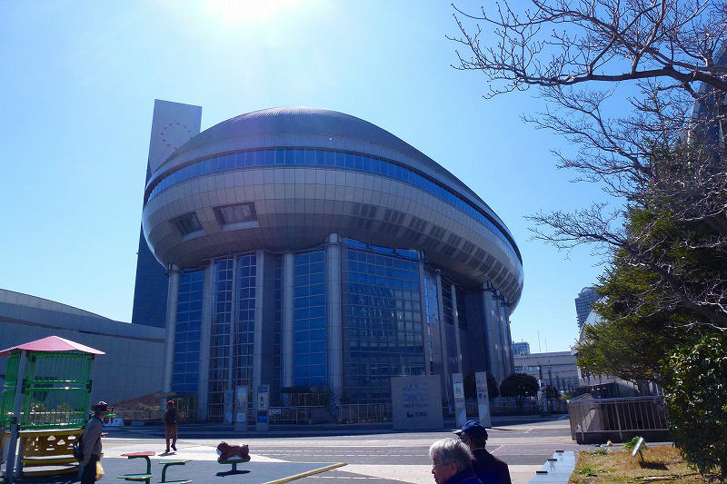 次のベイゾーンへは、りんかい線に乗車、国際展示場で下車しました。パナソニックセンターを左にみながら、有明コロシアム、有明アリーナへ、二つとも、工事中の為これまた、外側からチラッと観るだけでした。お腹も空いた頃合いで、江東区の虹の下水館で昼食と思いきや、只今【休館中】の貼紙にガックリ。晴れた日でよかった。館前の広場で、仲良く、持参の弁当をパクつきました。食後にと考えていた館内見学もなく、次の水の科学館まで、400mをゆっくり歩き着いたところ、またも、【休館中】何処行っても休館、多分、Tokyoミナトリエも休館かもしれないと、スマフォで確認したところ、キュウカンでした。