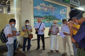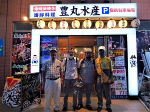 - 打ち上げは、駅構内の「豊丸水産」で県内各酒を有志で楽しんだ