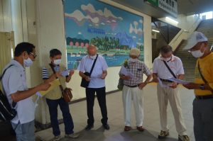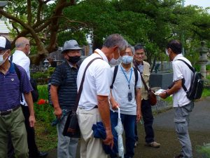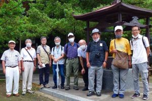 - 「大統寺」境内で、本日の集合記念写真の9名