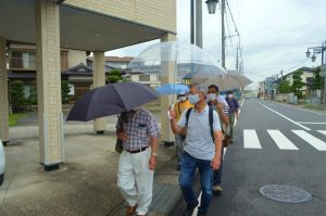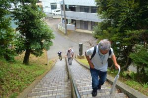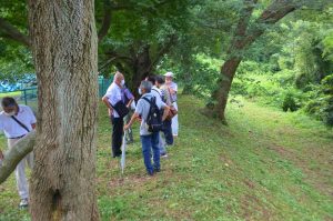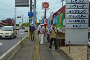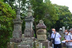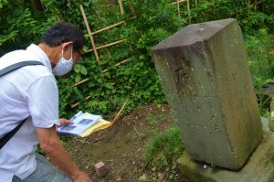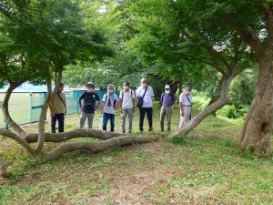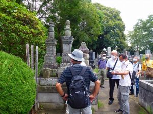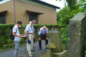 龍ケ崎市駅からおよそ15分で、安楽寺の境内にある「平国香」の墓とされる供養塔に来ました。石碑には、平将門の伯父で将門の敵側となり戦死したなど謂れが記され熱心に見入っていました。100m程先の「道標」も尋ね、殆ど平仮名の文字を皆であれこれと解読を楽しみました。ここからコミュニティバスで、市の中心地入口となる市役所に向かい、各自で昼食をとりました。午後の最初が、「説5」に因む「頼政神社」です。徒歩で5分ほど。立派な建物を想像したのですが、細い路地の脇道の奥に小さな祠のような石碑だけ。これには、皆さん唖然。よほど注意をして探さないと見落としてしまいます。次は徒歩10分ほどで、「大統寺」へ。土岐胤倫公の墓と伝わる宝筐院塔が有ります。かなり風化して、一部は崩れ落ちていました。ここには、石碑や説明板も無く、詳しい内容はわかりません。さらに徒歩15分で、「龍泉寺」通称「龍ケ崎観音」に来ました。土岐胤倫公の室の難産に際し、聖観世音菩薩を迎えたという。ちょうどこの日7月10日は、四万六千日の功徳の有る日に当たり、願いを込めてお参りしました。お賓頭盧様も有り、体の悪い処と同じ場所を撫でて快癒祈願も。そろそろ疲れ始めた頃、徒歩15分で 「説3」に因む「龍ケ崎二高」へ。小高い丘の上に有り長い石段を見て、一人が下で待機することになった。敷地一帯が龍ケ崎城の跡地で、グランドのネットの外側に土塁と堀の跡が見られた。夏草や樹木に覆われて、眼下の景色を見ることができず、龍を思わせる地形を確認できなかった。帰り道はゆっくりと坂道を降りて、10分で「般若院」に到着。伊達家代々の位牌所の御朱印として、3石を賜ったというが、それよりも皆様の関心は樹齢500年といわれる枝垂桜に。満開の桜を想像しながら、大木に見入っていました。もう一息と、20分かけて「愛宕神社」へ。ここも急な石段ですが、今度は全員で登りました。伊達政宗の子 忠宗の建立。碑文に有る左甚五郎の作という彫刻を、覗き込んで見ました。10分で龍ケ崎市役所前に戻ったところで、5名が龍ケ崎鉄道で帰路へ。ここまで、約20,000歩も歩いたことになり、かなり皆様も疲労している様子。予定では、ここからのコミュニティバスで龍ケ崎市駅に向かう途中、「道標」を尋ねることにしていたが、当然のように割愛しました。駅舎の脇に有る豊丸水産で 16:50から打ち上げの懇親会。金曜日とは言え、時間も早く客は私たち4名のみでした。18時を過ぎてから、チラホラと増えてきたものの、気の毒な程店はガラガラでした。地元の紹介は、改めて歴史や地理を見直すことになり、自分にとっても有意義でした。